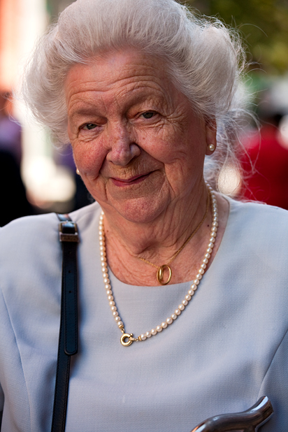 „Well, do you want to come home with me?“ Mrs. B. invites me after a while. „I live just around the corner.“ Vivacious, that describes my first and the following impressions I have of Mrs. B. She’s amused that I want to take a photo of her, but she want’s to know excactly what for I do all this. „Ah, well, you’ve come to the right woman; I truly can tell storys. I’ve seen the whole world.“ The whole world? „Yes, the whole world. In China I just made it to Shanghai, but apart from that I’ve been everywhere. At all continents, in all countrys.“ When Mrs. B was 60 years old, she married her second husband; he was 10 years older than her. „We knew us of yore, since we were young.“ Both of them were widowed. „But we were fond of each other already well before.“ Her husband used to travel his whole life long, but it all began in earnest when he retired. He always planed their travels, and she packed the bags and oraganized everything at home. „Once, at the plane when we were at the return-flight, he said: ‚Don’t get mad at me, but in three days we’ll continue our journey.‘ “ Travelman, that’s how she calls him, when she speaks about him: „He was the travel-man.“